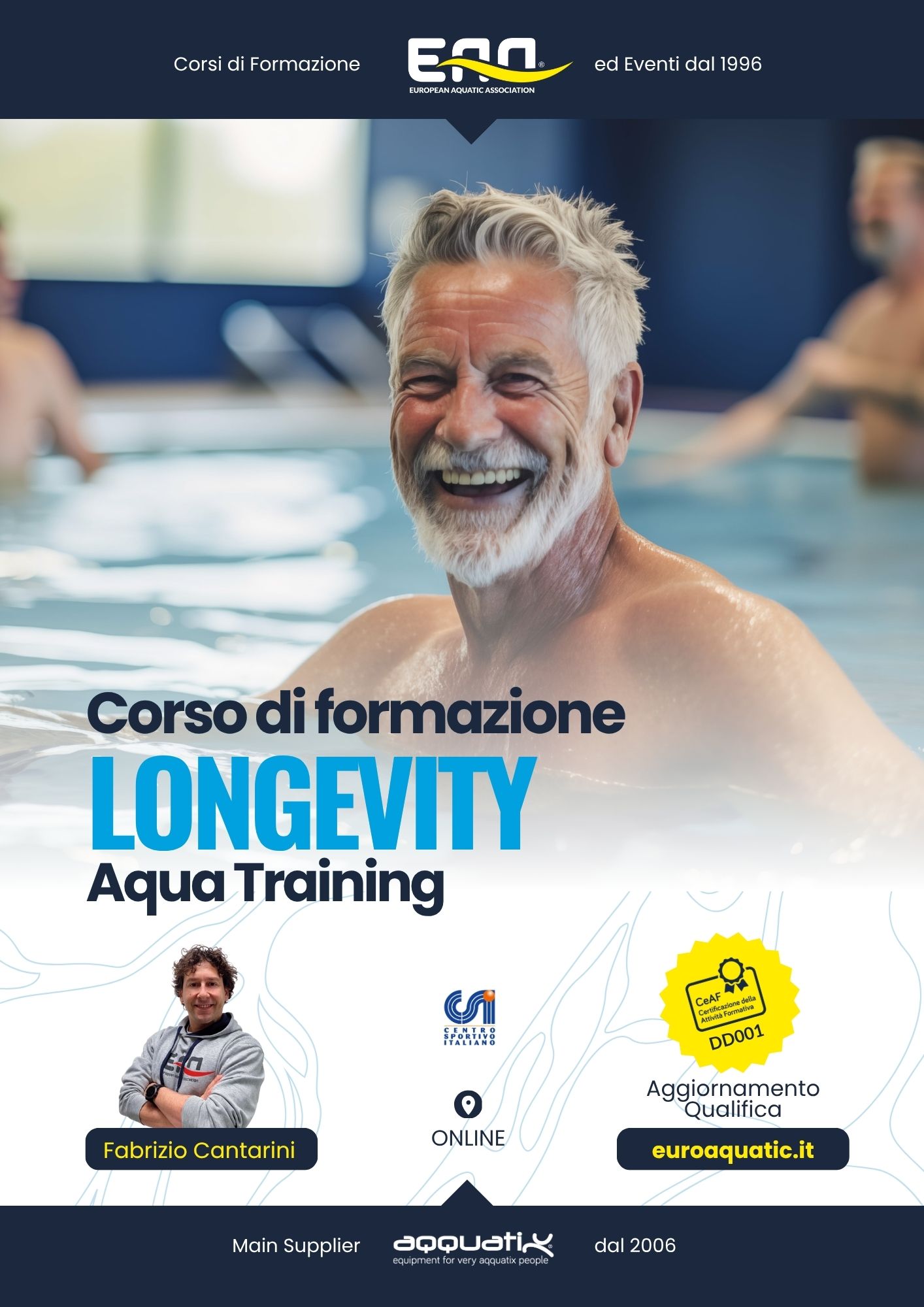 Alla chiusura del corso viene rilasciato l'attestato EAA - LONGEVITY AQUA TRAINING